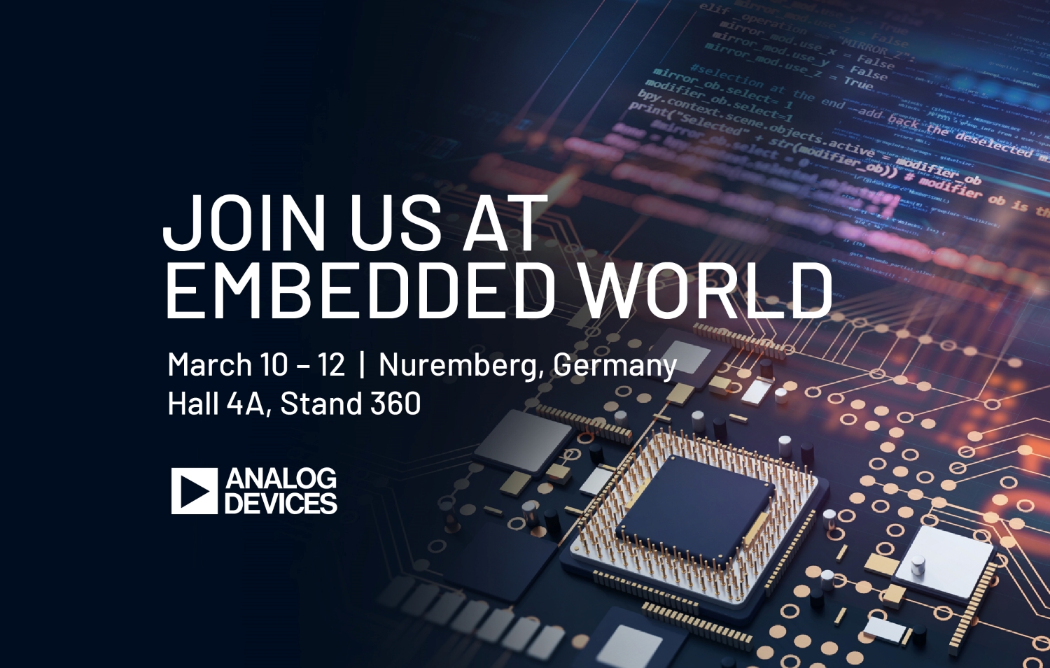 Analog Devices, Inc. (ADI) incontrerà i professionisti del settore a Norimberga in occasione di Embedded World 2026, per mostrare come l’azienda si sta impegnando a liberare il potenziale dell’intelligenza fisica in tutto l’ecosistema embedded.